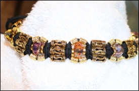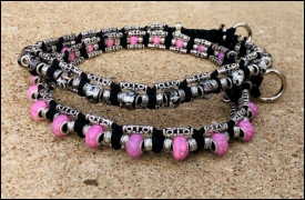 Tracy's attractive handcrafted slip collars are made of 550 lb parachute cord and are super strong. Each collar is unique and made with metal and acrylic beads. They may be machine washed in a tied sock. Tracy's collars already have a worldwide reputation, selling in Japan, Australia, Canada and the U.K.