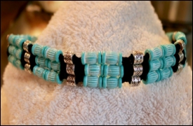 Collars range from $30.00 to $65.00 each. (Prices vary due to length of collar and bead type.)